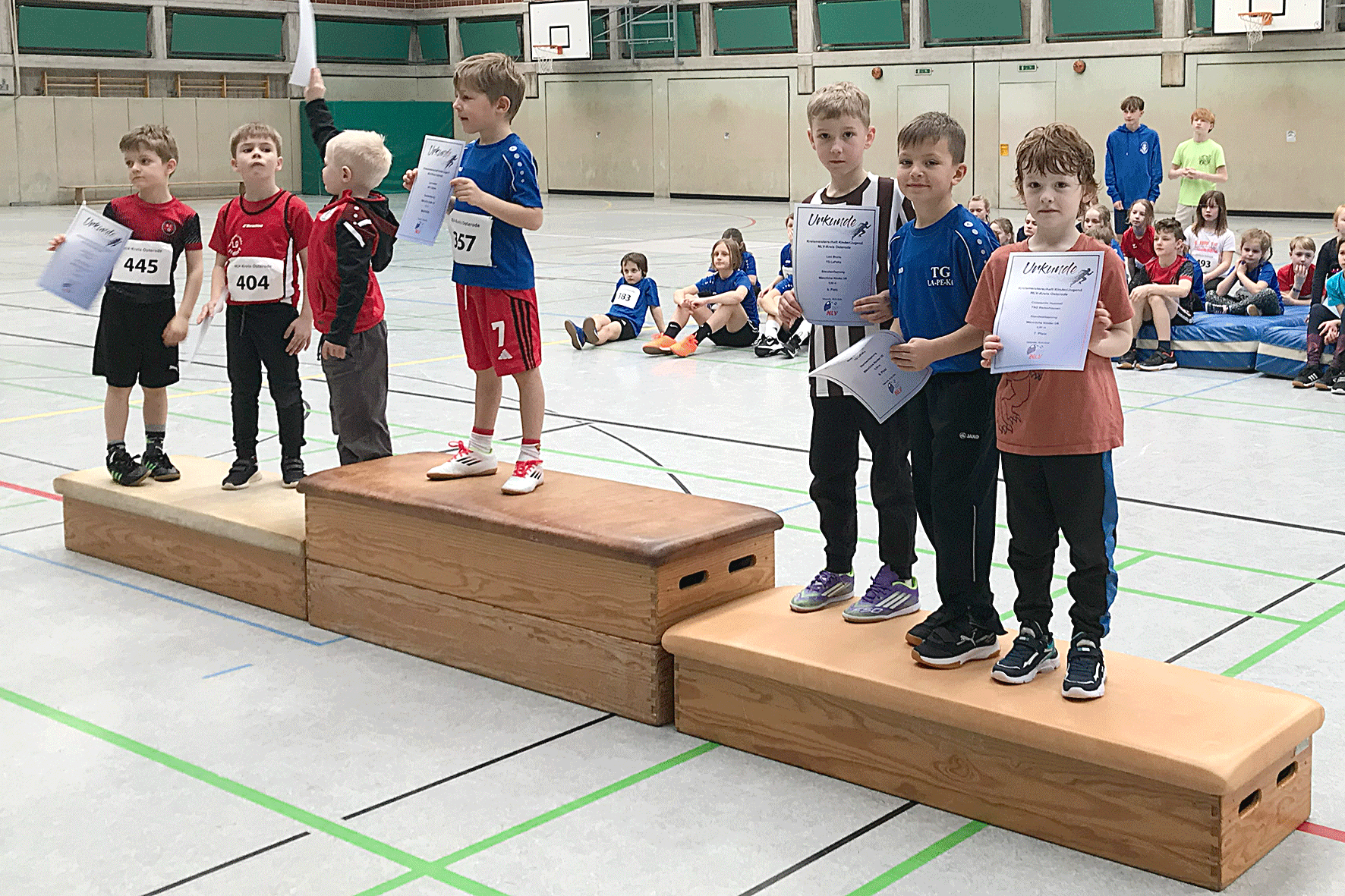 5 Kinder gingen bei den Hallenkreismeisterschaften an den Start. Dort belegte Consantin Hummel zwei 7. Plätze im Weitsprung und 50 Meter Lauf. Balthazar Hummel konnte einen 10. Platz und den 12. Platz erreichen. Helena Apel schaffte eine 5. Platz beim 50 Meter Lauf und den 6. Platz beim Weitsprung. Luna Apel war schnell und belegte beim 50 Hürdenlauf den 2. Platz und im 50 Meter Sprint den 5. Platz. Ebenfalls stellte sich Miriam Sauer ihren Aufgaben und belegte den 10 Platz im 50 Meter Hürdenlauf und den 11. Platz im Sprint.